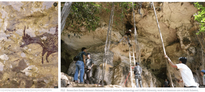 වල් ඌරෙකු වටා සිටින මිනිසුන් තිදෙනෙකු සහිත තද රතු වර්ණ පරාසයකින් ඇඳ තිබූ චිත්රයක් සහ තවත් ඌරන්ගේ චිත්ර ගනණාවක් අවම වශයෙන් වසර 45,000 ක් වත් පැරණි බව විද්යාඥයින් පසු ගිය සතියේ නිලවශයෙන් ප්රකාශයට පත් කලේය. ඒ අනුව ඉන්දුනීසියානු, දකුණු සුලවේසි ප්රාන්තයේ Maros-Pangkep ප්රදේශයේ Leang Karampuang ගුහාවෙන් සොයාගත් මෙම 92cm සහ 38cm (අඟල් 36 x 15) චිත්ර මිනිසා විසින් කරන ලද පලවන කලා නිර්මාණය වේ.