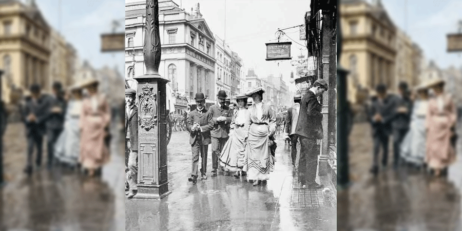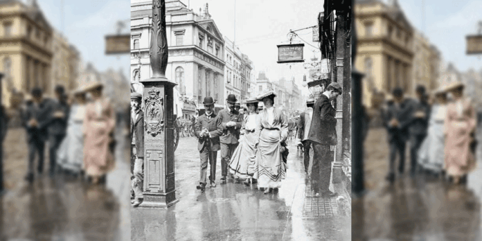 1900 කියන්නෙ හිරු නොබසින අධිරාජ්යයේ බලවත්ම යුගය. වික්ටෝරියානු සංස්කෘතිය ඉතාම ඉහලින් පිලිගන්න කාලයක් මේ. නමුත් අද ලන්ඩනයේ වීදියක වැහි දවසක කාන්තාවන් මේ වගේ ඇඳුම් ඇඳගෙන යාවිද?