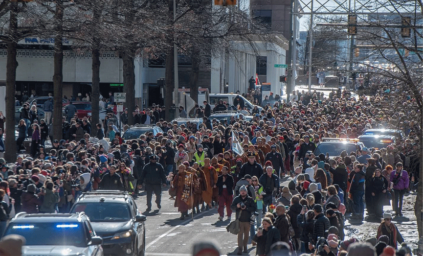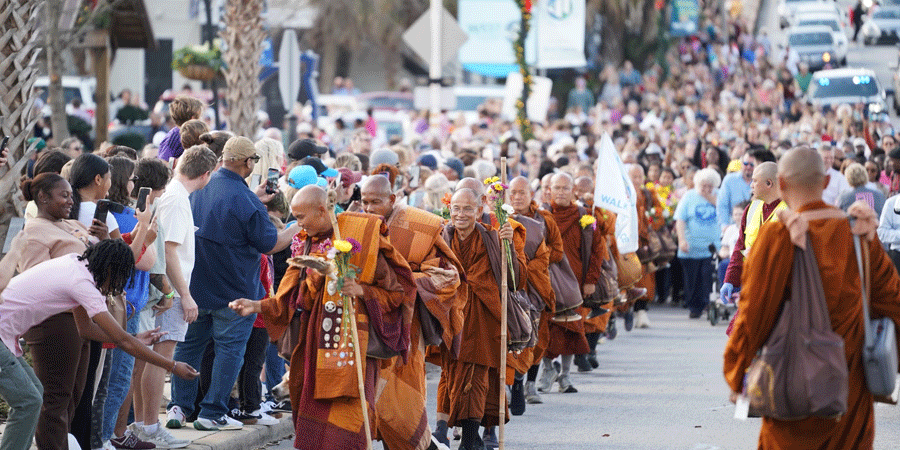 ඒත් ඉතින් ලෝකෙ අනෙක් රටවල එහෙම වෙලා නෑ කියන කතාව නම්, අවස්ථාවාදී බොරුවක්. මමත් මුලින් හිතුවෙ ඒක ඇත්තක් කියලා. ඒත් පාගමනෙ නිල ෆේස්බුක් පිටුවෙ ඡායාරූප දැක්කහම පේනවා අමෙරිකාවෙ පාගමන වටේට එකතු වෙච්ච සෙනඟ, ඒ තරම් සිය ගානක බෞද්ධ ජන ඝනත්වයක් සහිත ලංකාවෙදි එකතු වෙලා නැති බව.