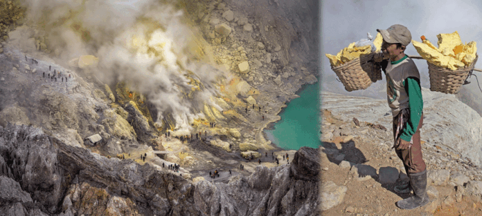 කවාහ් ලිජන් ( Kawah Ijen ) සල්ෆර් පතල්