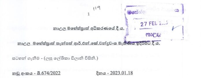 මම නීතිපති දෙපාර්තමේන්තුවේ අවුරුදු 15ක් පමණ රාජකාරි කරලා තියෙනවා. අපි දන්නවා අධිකරණ කටයුත්තකට අදාළ ව පොලිස් ස්ථානාධිපතිවරයෙක් අධිකරණයට ගෙන්වාගන්න තියෙන අමාරුව. නමුත් මේ නඩුවට අදාළ ව පොලිස් නීතිඥවරුන් 06ක්, මාතලේ ජ්යෙෂ්ඨ පොලිස් අධිකාරීවරයා ඇතුළු ඉහළ නිලධාරීන් රැසක් අධිකරණයට ඇවිත් ඉන්නවා. මෙම අධිකරණය දුන්නු නියෝගවලට එකඟ නැත්නම් පොලිසිය කළ යුත්තේ ඉහළ අධිකරණයට යන එක. එහෙම නැතුව නියෝග ක්රියාත්මක නොකර වෙන වෙන දේවල් කරන්න බෑ. සාක්කිකරුවන්ට පැමිණෙන්න කියලා කළ දැනුම්දීමේ තිබෙන්නේ නාඋල මහේස්ත්රාත් අධිකරණයේ පෙනී සිටින්න කියලා නීති අධ්යක්ෂ රුවන් ගුණසේකර ඉදිරියේ.’ යැයී නීතිඥ චාරක ධර්මසිරි මෙහිදී ප්රකාශ කළේය.