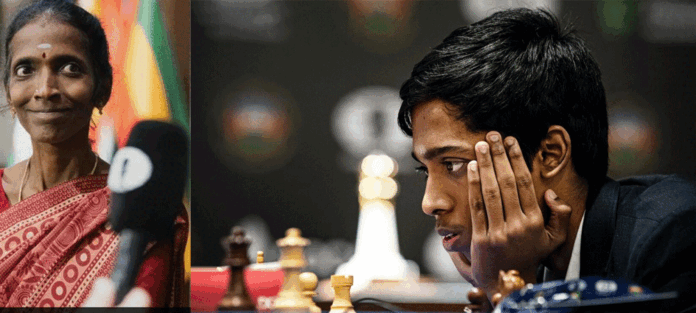 ප්රඥ්ඥානන්ද චෙස් සෙල්ලම් කරන්නේ අවුරුදු 10 ඉදන් 12-13 කාලේ ජාතික මට්ටමේ තරඟ සෙල්ලම් කරා. ඒ හැමදාකම මේ අම්මා මේ විදිහටම හිටියා. ඒ දැන් අනුග්රහයකයෝ රජය හිටියට ඊට කලින් මේ අම්මා සෑහෙන්න මහන්සි වෙන්න ඇති තැන් තැන් වල අරගෙන යන්න. මේ තත්ත්වෙට ගේන්න. ඔහු දිනනකොට වගේම පරදිනකොටත් අම්මගේ ඇස් වලට කඳුළු එන්නේ ඒ ජයග්රහනය වගේම පරාජයත් තමන්ගේ කොටසක් වෙන නිසා. එහෙම අම්මෙක් නොහිටින්න ප්රඥ්ඥානන්ද කැලේම පරවෙලා යන්නත් තිබුනා. ඒ අම්මා වීරයෙක් වෙන්නේ ඒ නිසා.