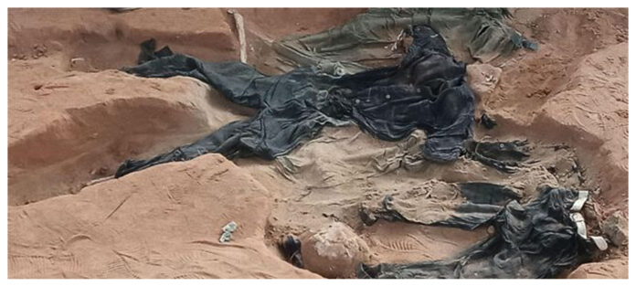 සමූහ මිනිවළ තුළින් මේ දක්වා පතුරම් උණ්ඩ වැනි කොටස් තුනක් හා පුද්ගලයන් හඳුනාගැනීමට පලඳින ලද යැයි කියන අංක තහඩු පහක්, අපවිත්ර ජලය පවිත්ර කරන උපකරණයක්, සයිනයිඩ් කරලක්, කාන්තා තනපට, ආරක්ෂක අංශ භාවිතාකරන කැලෑ ඇඳුමට සමාන ඇඳුම් වැනි උපකරණ රැසක්ද හමුව ඇත.